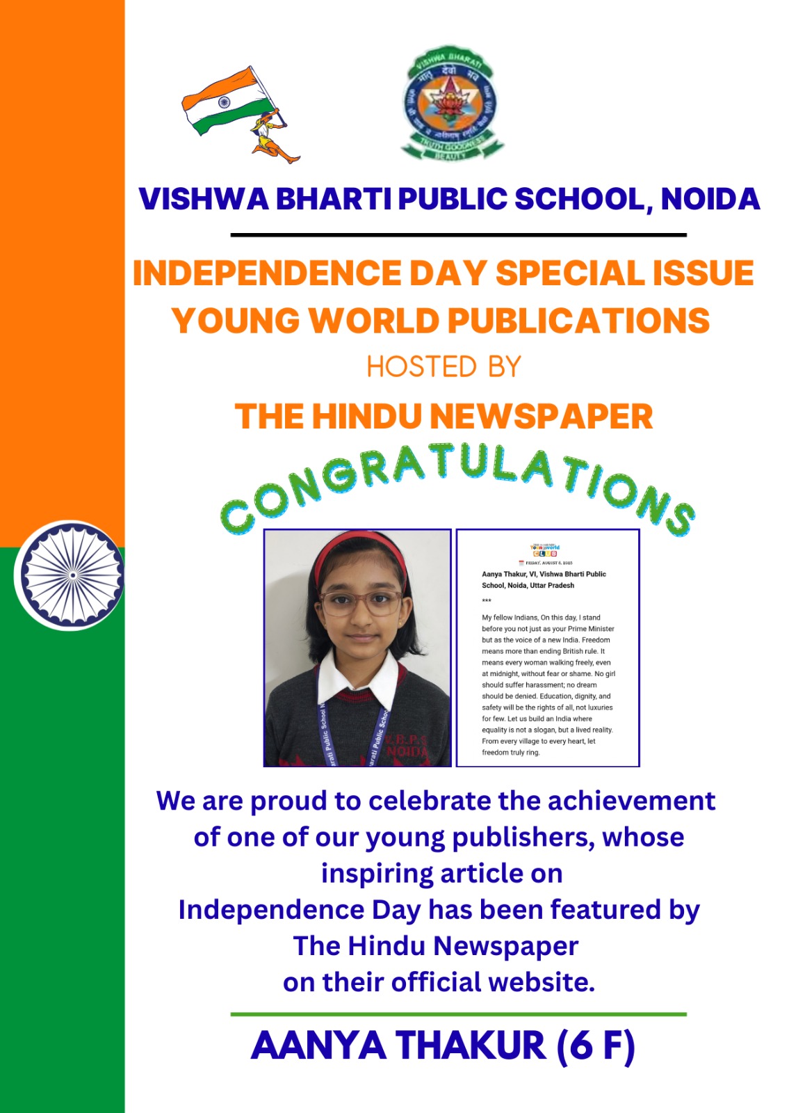 | Aarvi Yadav 6- F | Sundram |