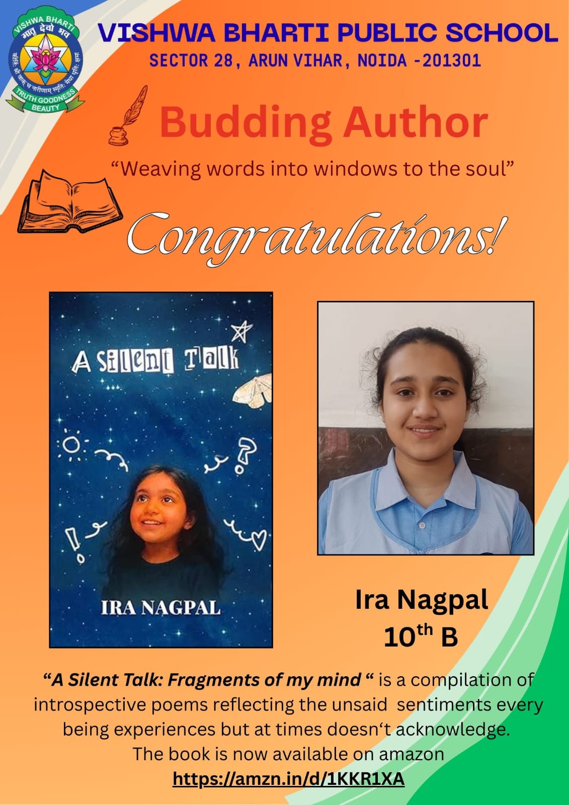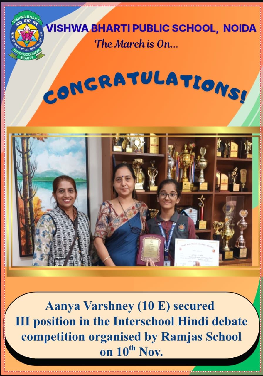 Aanya Varshney secured III position in the Interschool Hindi debate competition organised by Ramjas School on 10th Nov.
